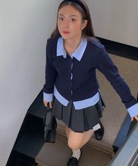 프로즈 레이어드 카라 셔츠 가디건 [BLUE STRIPE]