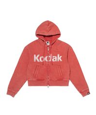 씨네코닥 세미크롭핏 워싱 후드 집업 우먼 RED