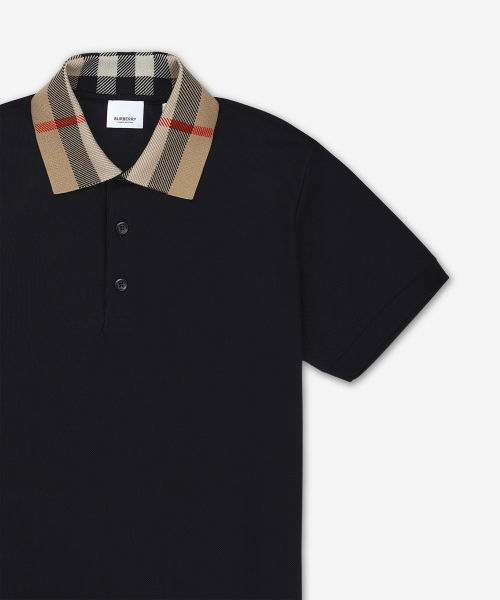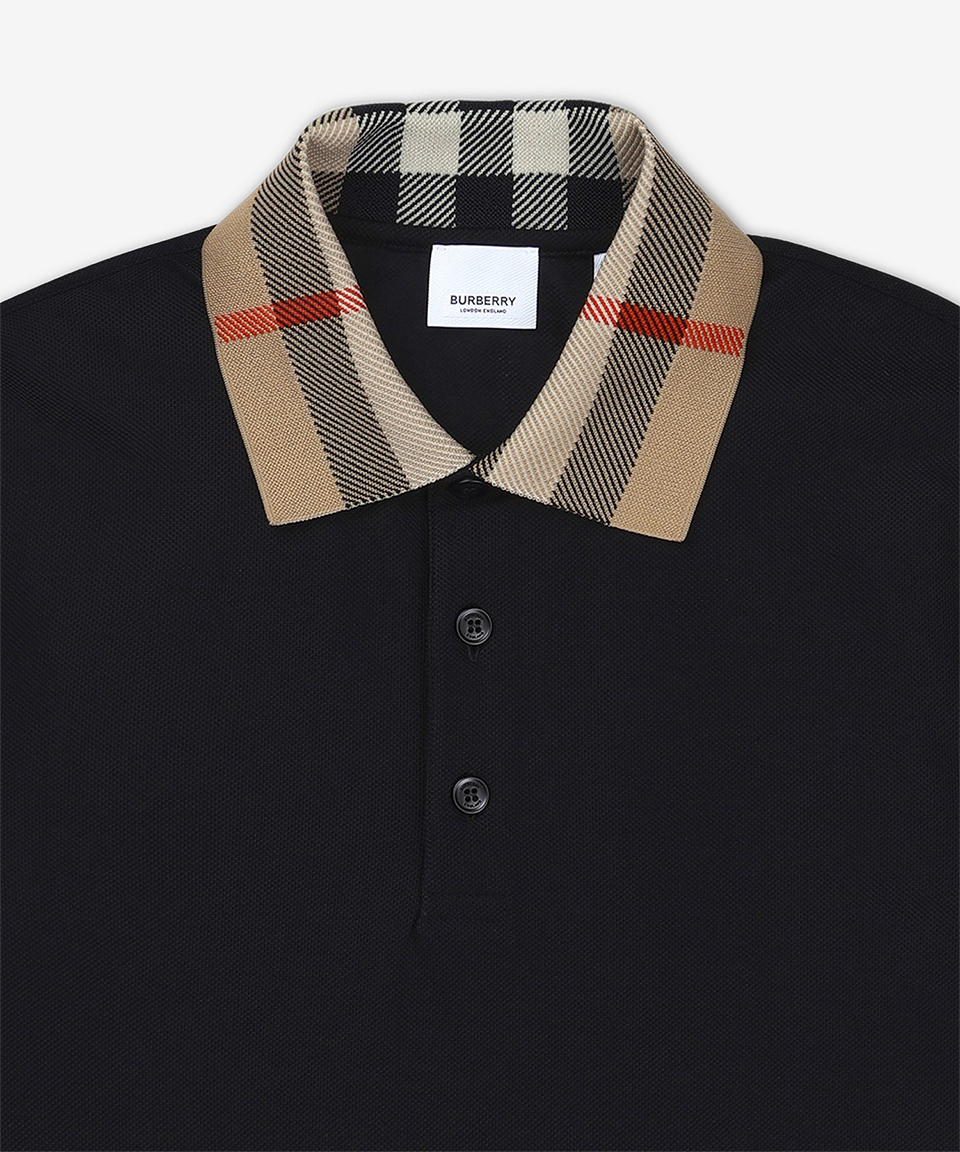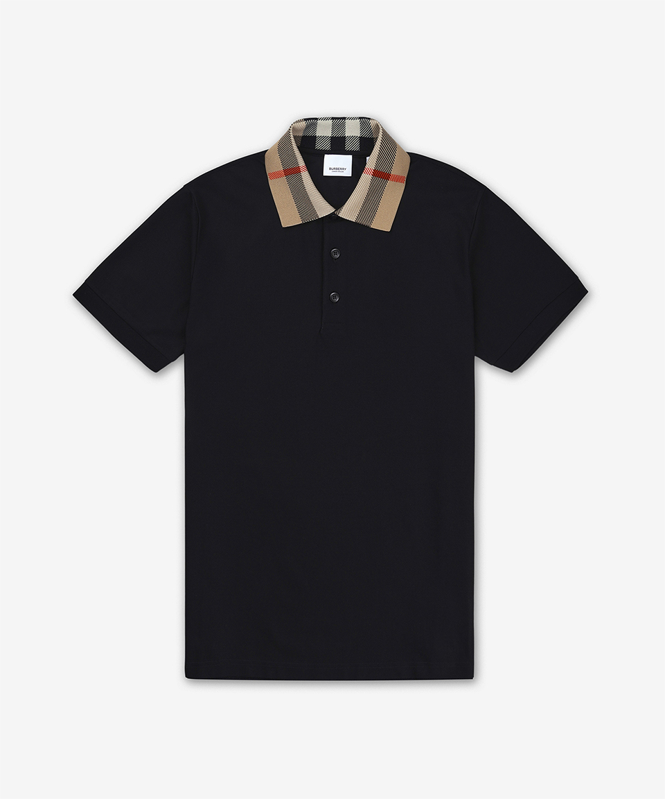 코튼 슬림핏 반소매 폴로 셔츠 - 블랙 / 8071620
