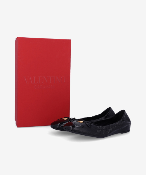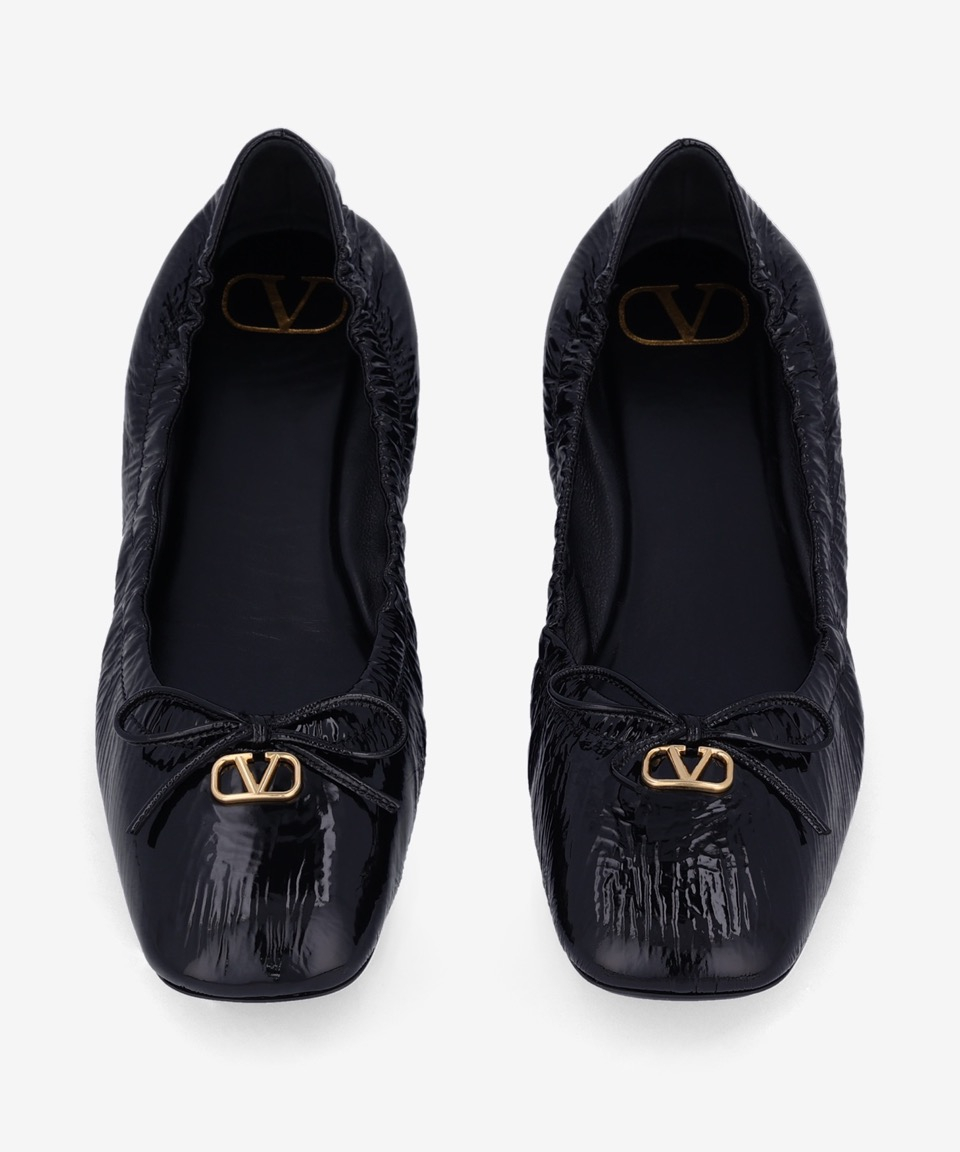 V로고 시그니처 발레리나 플랫 슈즈 - 블랙 / 5W2S0JG3HRM0NO
