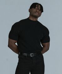머슬핏 모크넥 라이트 니트 숏슬리브