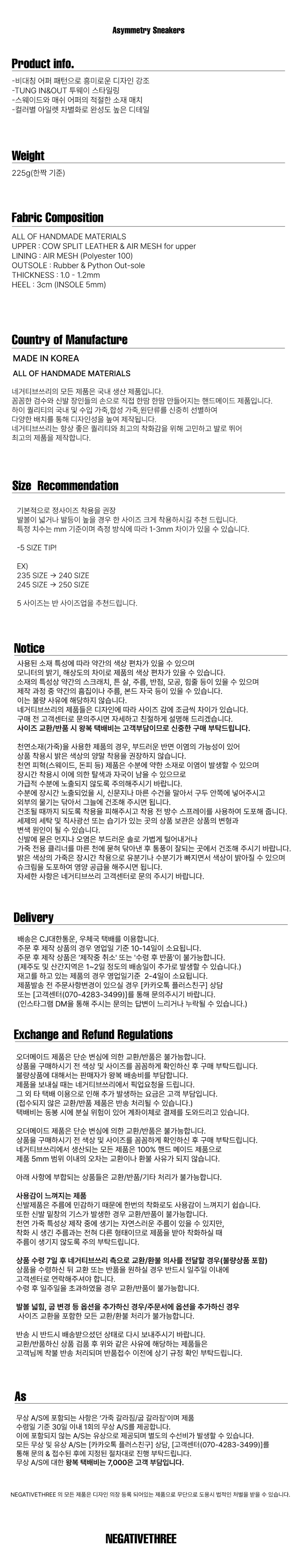 네거티브쓰리(NEGATIVE THREE)는 어떠한 장르에 국한되기를 거부하며, 성별의 경계 없이 자신을 표현하기를 원하는 이들을 위한 슈즈 브랜드입니다. 또한, 그들이 가장 자신을 표현하기 좋은 스타일링을 착용할 수 있는 온도가 '영하 3도'라는 내적 의미도 있습니다.