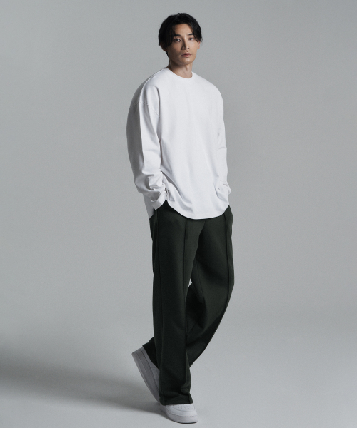 원턱 헤비코튼 라인 와이드 팬츠