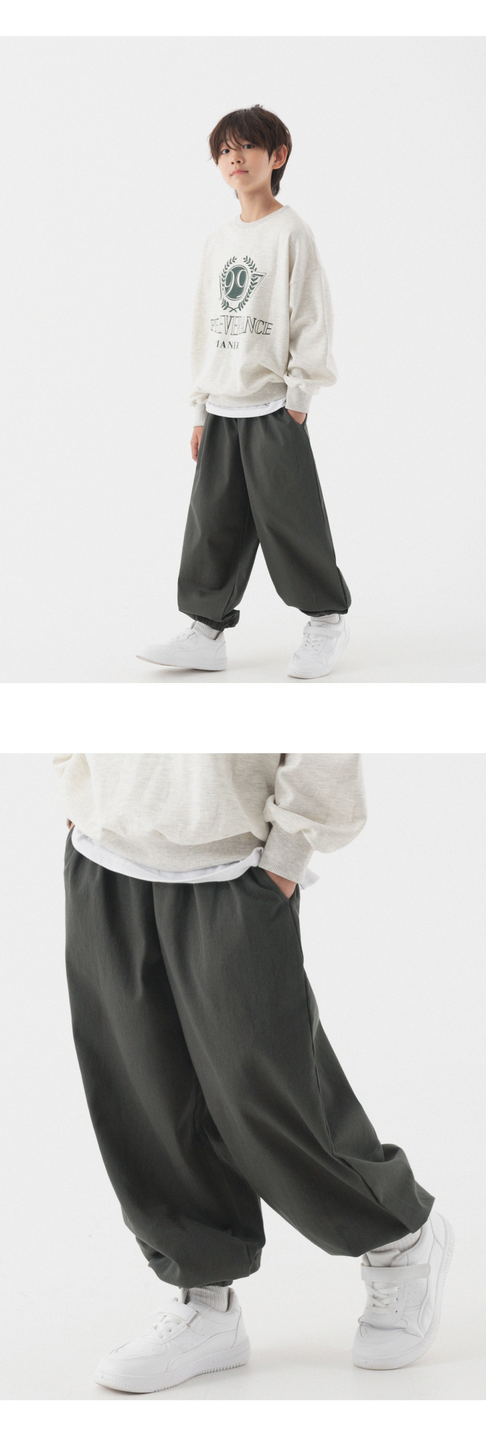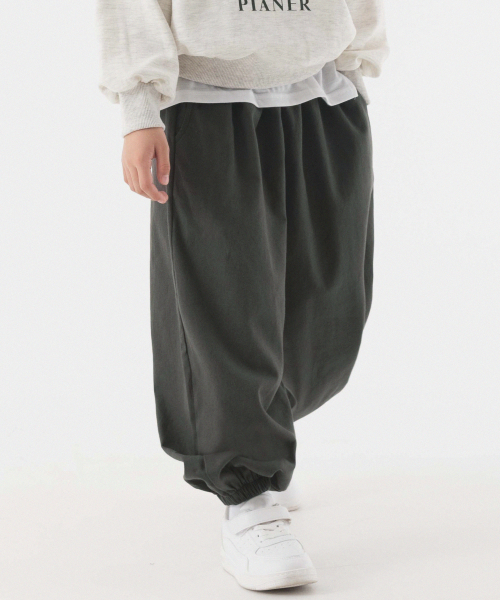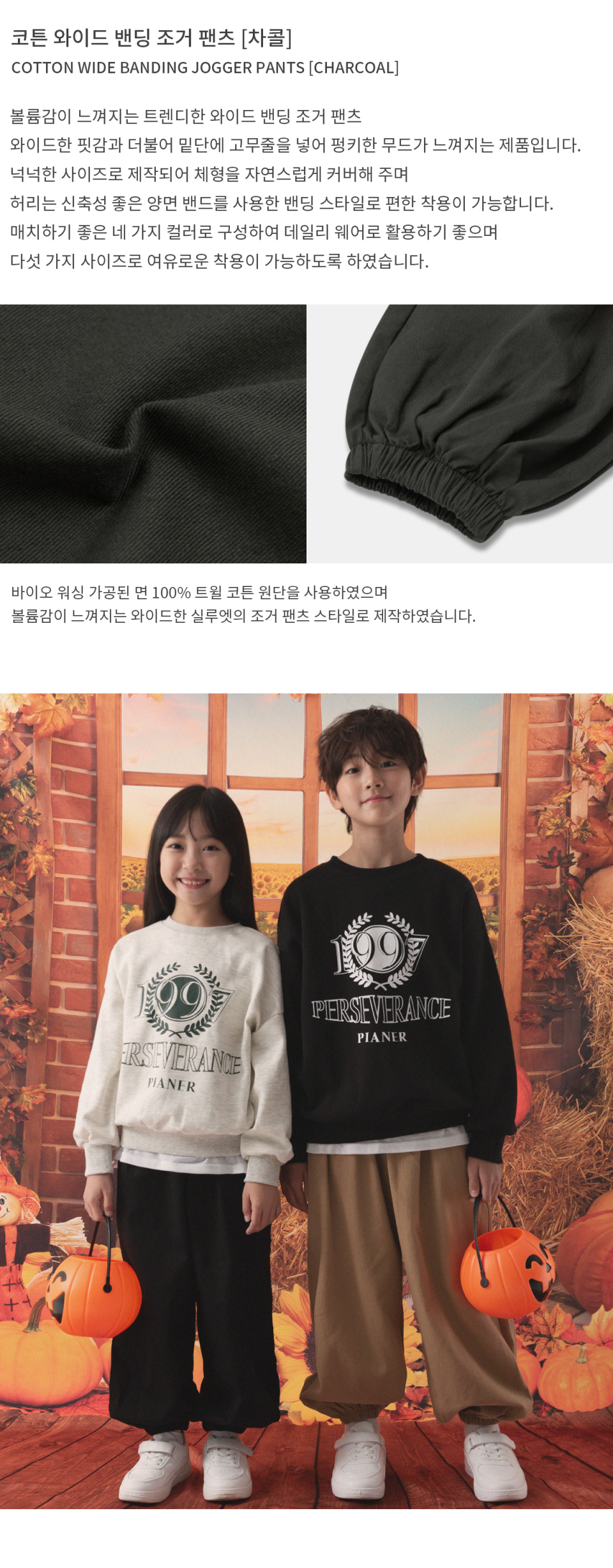 코튼 와이드 밴딩 조거 팬츠 (차콜)