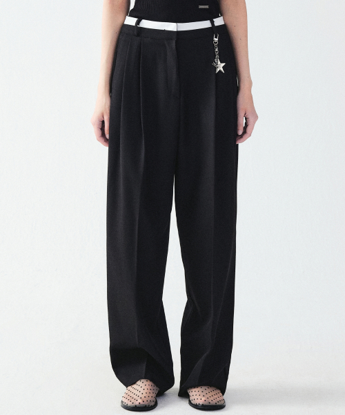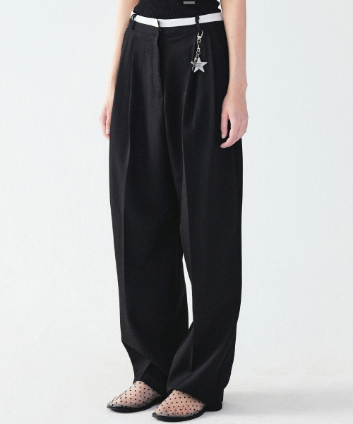 DOUBLE WAISTBAND SLACKS_BLACK