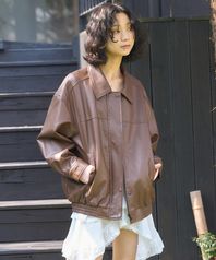 FAUX 레더 오버핏 쟈켓 [브라운]