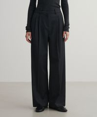 (우먼)울 투턱 세미 와이드 슬랙스 차콜