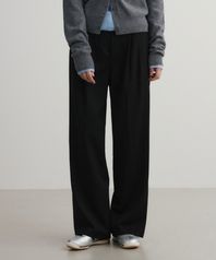 (우먼)울 투턱 세미 와이드 슬랙스 블랙