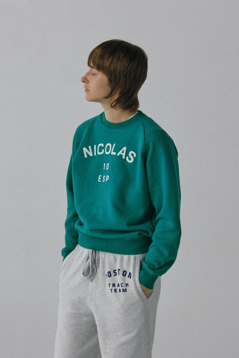 스페인 시골마을 축구팀 운동복에서 영감을 받은 기존 사커 스웨트에 아플리케 자수로 캐주얼한 무드를 더한 스웨트셔츠입니다.