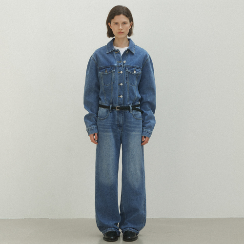 데님의 워싱감이 매력적인 데님 오버롤 점프수트 입니다.