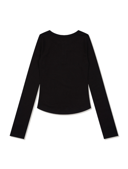우먼즈 슬림핏 빅라운드 긴소매 티셔츠 블랙(FCE1TS306W)