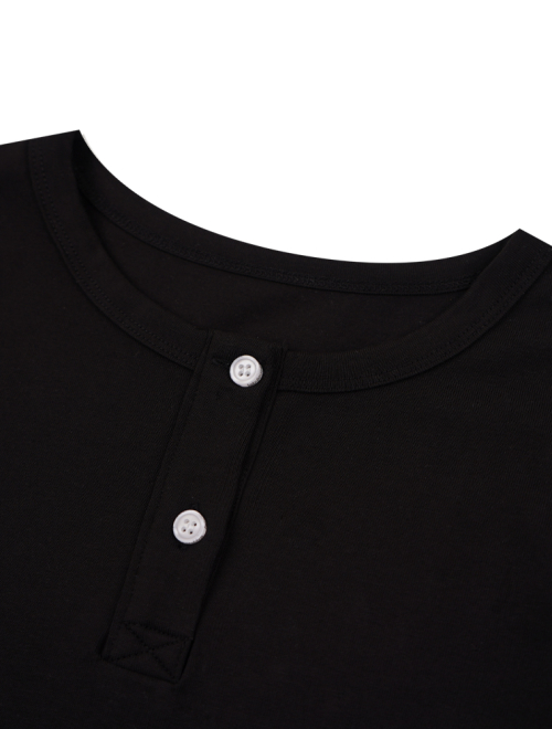 우먼즈 슬림핏 스판 헨리넥 블랙(FCE3TS506W)