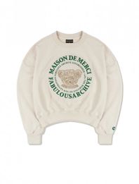 [기모선택]우먼즈 크롭 베어프렌즈 엠보자수 맨투맨 아이보리(FCB3TS355W)