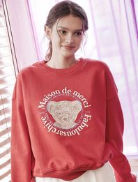 우먼즈 크롭 서클로고 엠보 베어프렌즈 헤비테리 맨투맨 레드(FCD3TS702W)