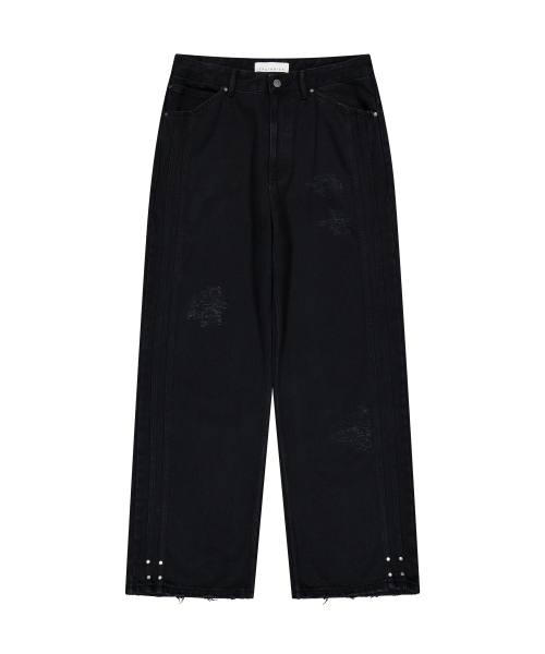 DAMAGED DENIM PANTS (BLACK)