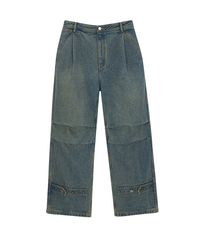 VINTAGE WASHED TUCK DENIM PANTS (SAND BLUE)