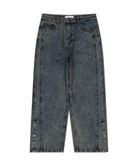 BRUSHED PIPED WIDE DENIM PANTS (BLUE)
