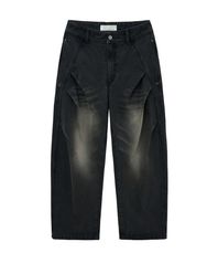 BRUSHED BALLOON TUCK DENIM PANTS (BLACK)