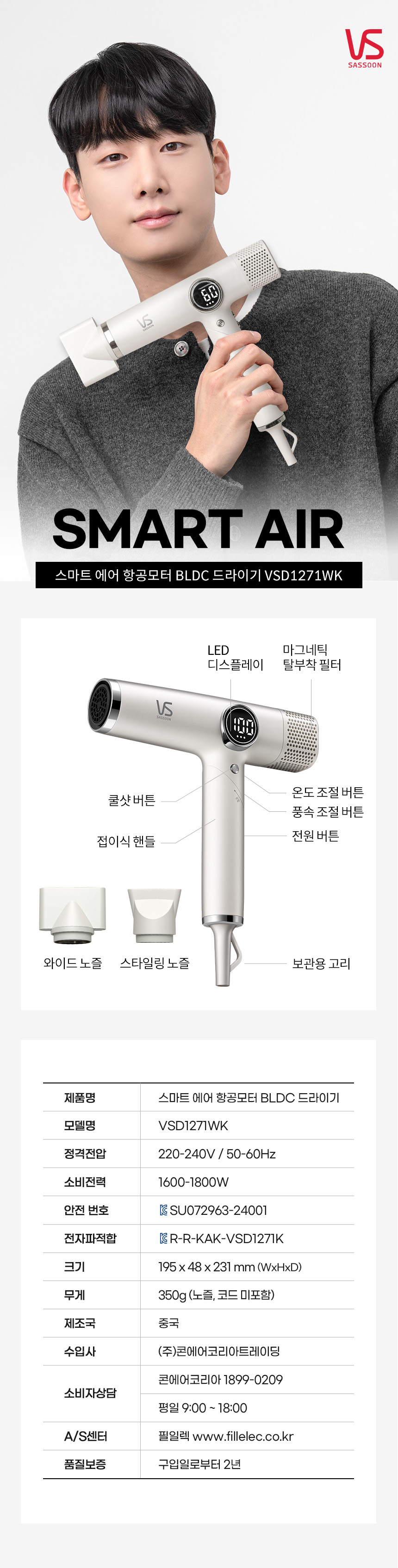 스마트 에어 항공모터 BLDC 드라이기 VSD1271WK