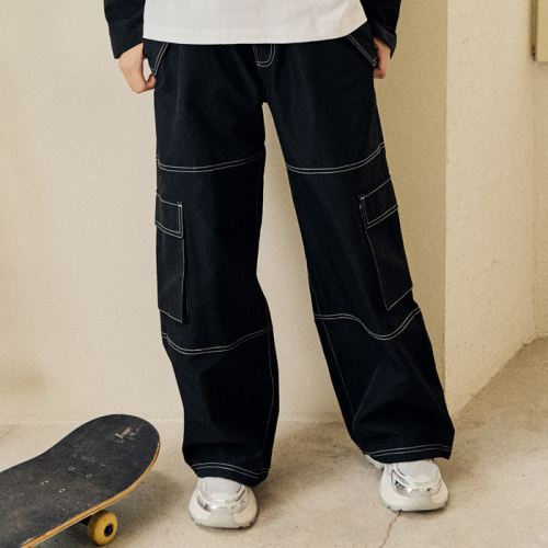 여아 주니어 스판 밑단 스트링 카고 와이드 팬츠