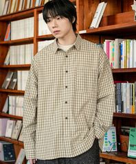 프레즐 오버핏 체크셔츠 베이지 KJLS2599