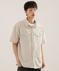 브루클린 웨스턴 스트라이프 반팔셔츠 라이트베이지 KJSS2615