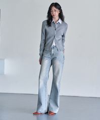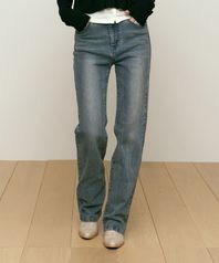 • 하이웨스트 , 타이트한 핏 이며, 세미 부츠컷 데님 팬츠입니다.