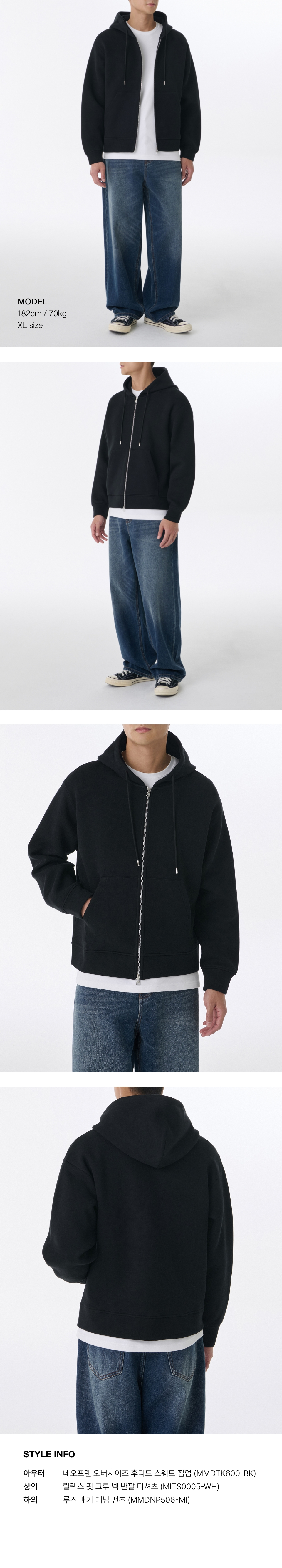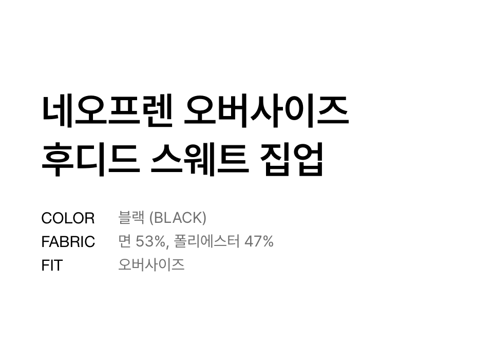 네오프렌 오버사이즈 후디드 스웨트 집업 [블랙]