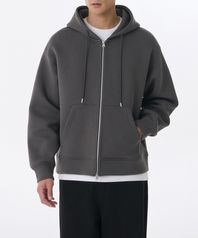 네오프렌 오버사이즈 후디드 스웨트 집업 [건메탈]