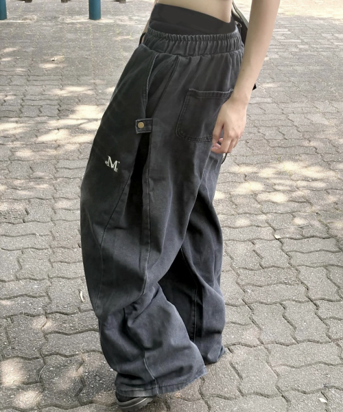 빈티지 프론트 워싱 와이드 벌룬 데님 팬츠 4Color