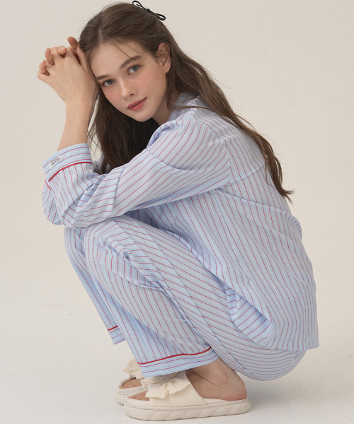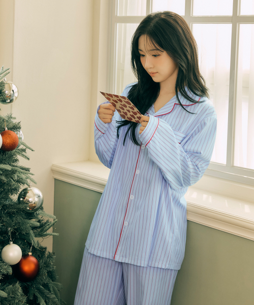 실크핏 웬즈데이 긴팔 커플 잠옷 세트
