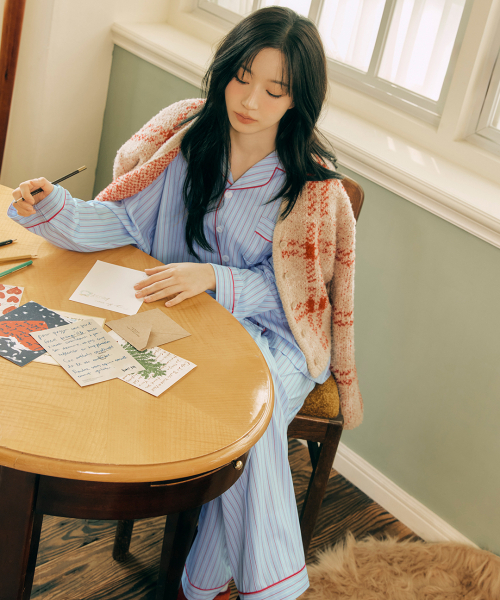 실크핏 러브썸 긴팔 커플 잠옷 세트