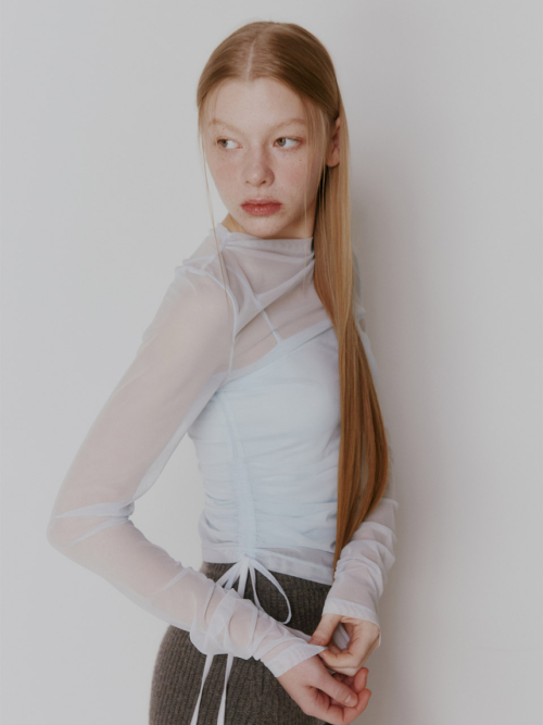 크링클 레이스 미니 드레스 (라이트블루그레이)