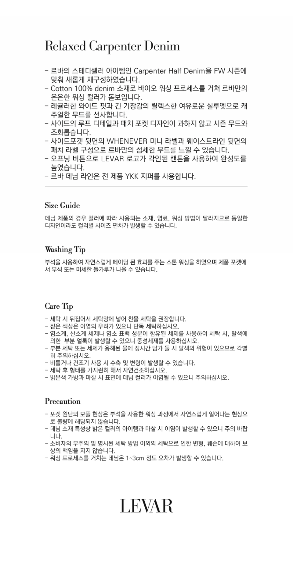 르바(LEVAR)는 우리의 일상에서 공존할 수 있는 실루엣과 편안한 무드를 지향합니다. 'Whenever'라는 슬로건 아래 자연스러움과 편안함이 주는 아름다움을 감각적으로 재해석하여 일상에서 함께하는, 공간적인 조화로움까지 전개합니다.