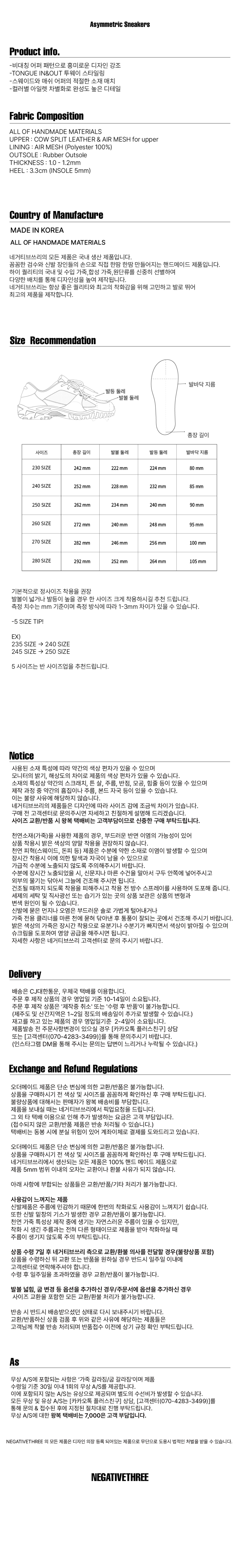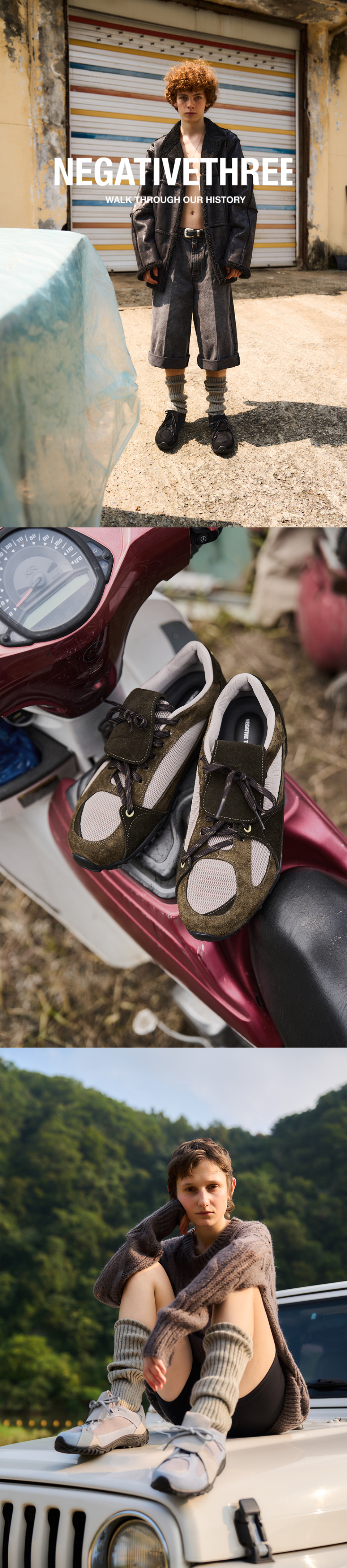 네거티브쓰리(NEGATIVE THREE)는 어떠한 장르에 국한되기를 거부하며, 성별의 경계 없이 자신을 표현하기를 원하는 이들을 위한 슈즈 브랜드입니다. 또한, 그들이 가장 자신을 표현하기 좋은 스타일링을 착용할 수 있는 온도가 '영하 3도'라는 내적 의미도 있습니다.