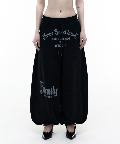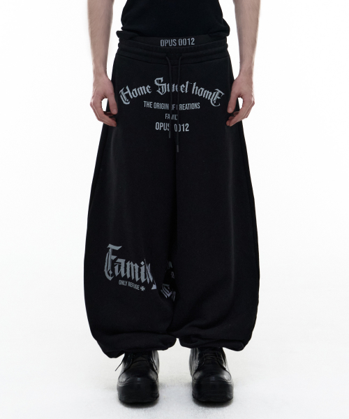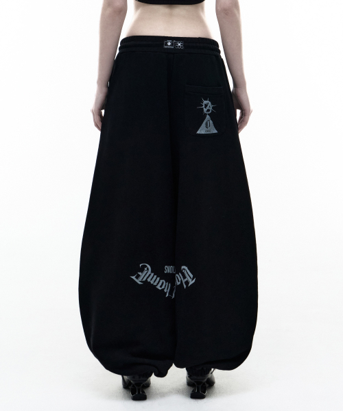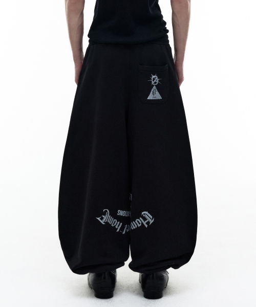 -노말 워싱 작업을 통해 빈티지한 무드로 제작된 벌룬핏 그래픽 스웻 팬츠