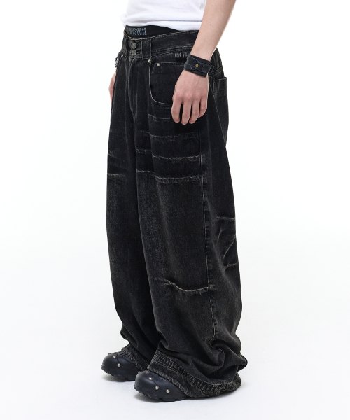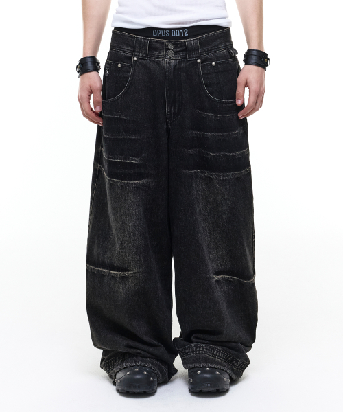 Op. 09 CLAWED MELTED DENIM PANTS BLACK