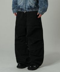 Knee Pin-Tuck Zippered Cargo Pants (Black)