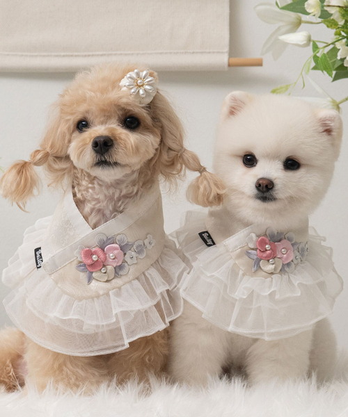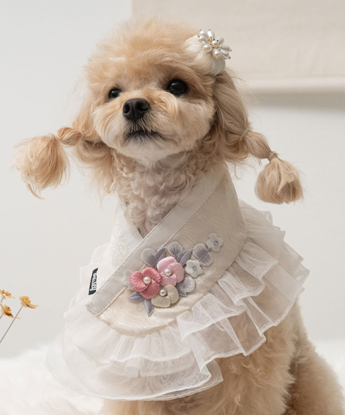 강아지 설날 하린 한복 케이프 진주빛
