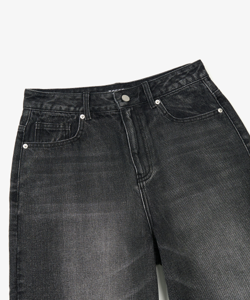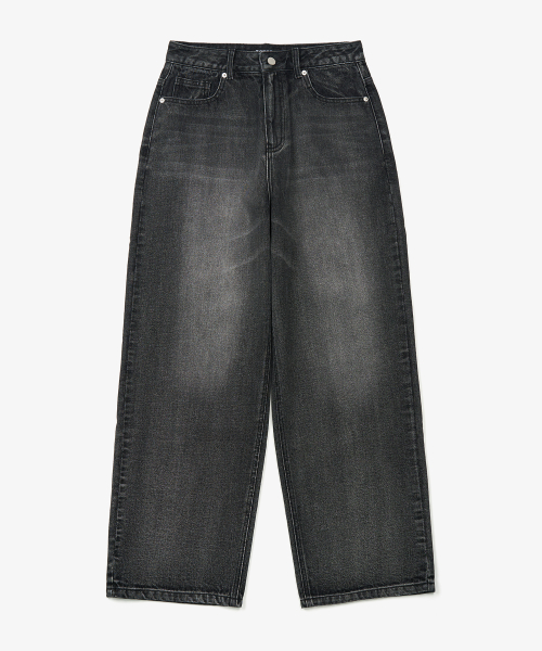 W 플레인 와이드 데님 팬츠 (WASHED BLACK)