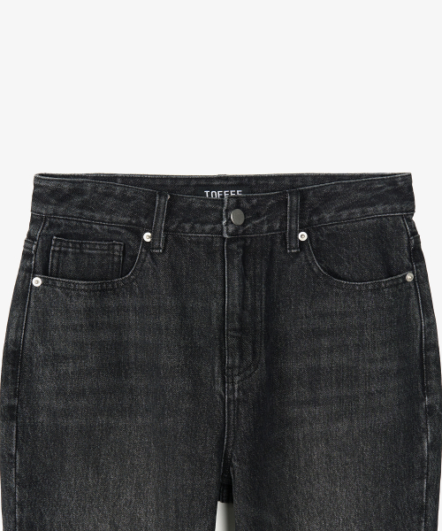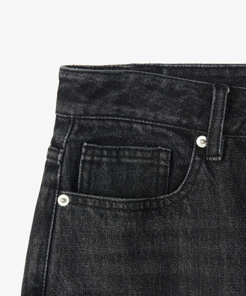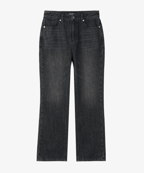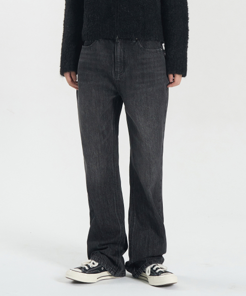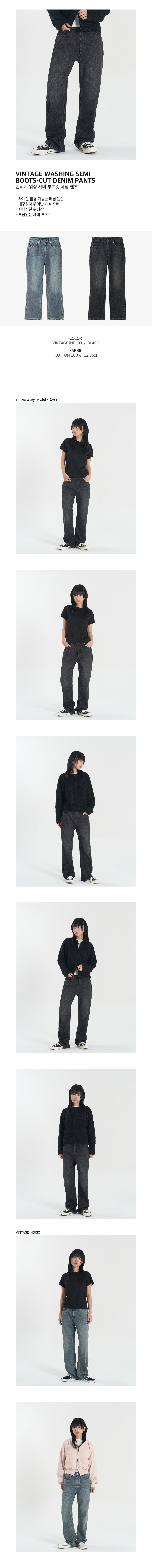 W 빈티지 워싱 세미 부츠컷 데님 팬츠 (BLACK)