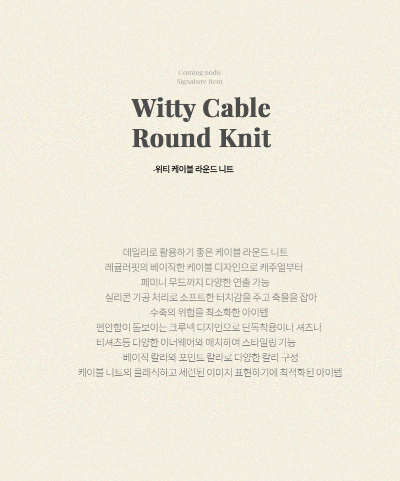 노드유 우먼(NODUWOMEN)은 'long-lasting'을 철학으로 삼아 현재에 뒤쳐지지 않으면서도 오랜 시간 손길이 가는 제품을 선보이는 브랜드입니다. 포멀함과 캐주얼함 사이에서 트렌디한 포인트들을 가미하여 완성도 있는 컨템포러리웨어의 무드를 추구합니다.