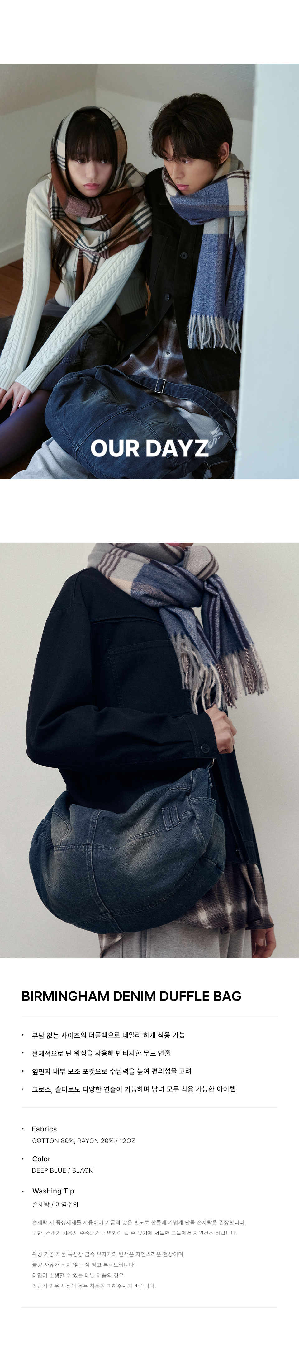 아워데이즈(OURDAYZ)는 편안한 실루엣과 트렌디한 스타일을 전개하는 데님 브랜드입니다. 합리적인 가격과 좋은 품질로 아워데이즈만의 가치를 선보이고자 합니다.