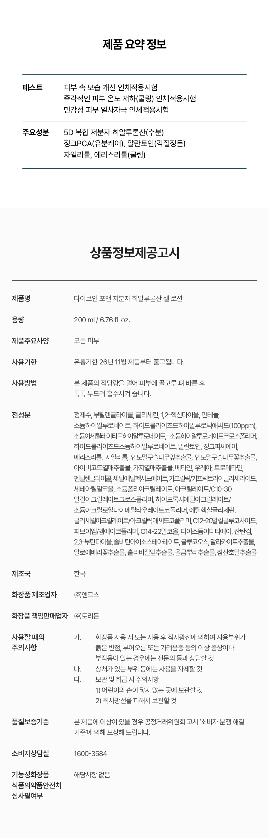 다이브인 포맨 저분자 히알루론산 젤 로션 200ml
