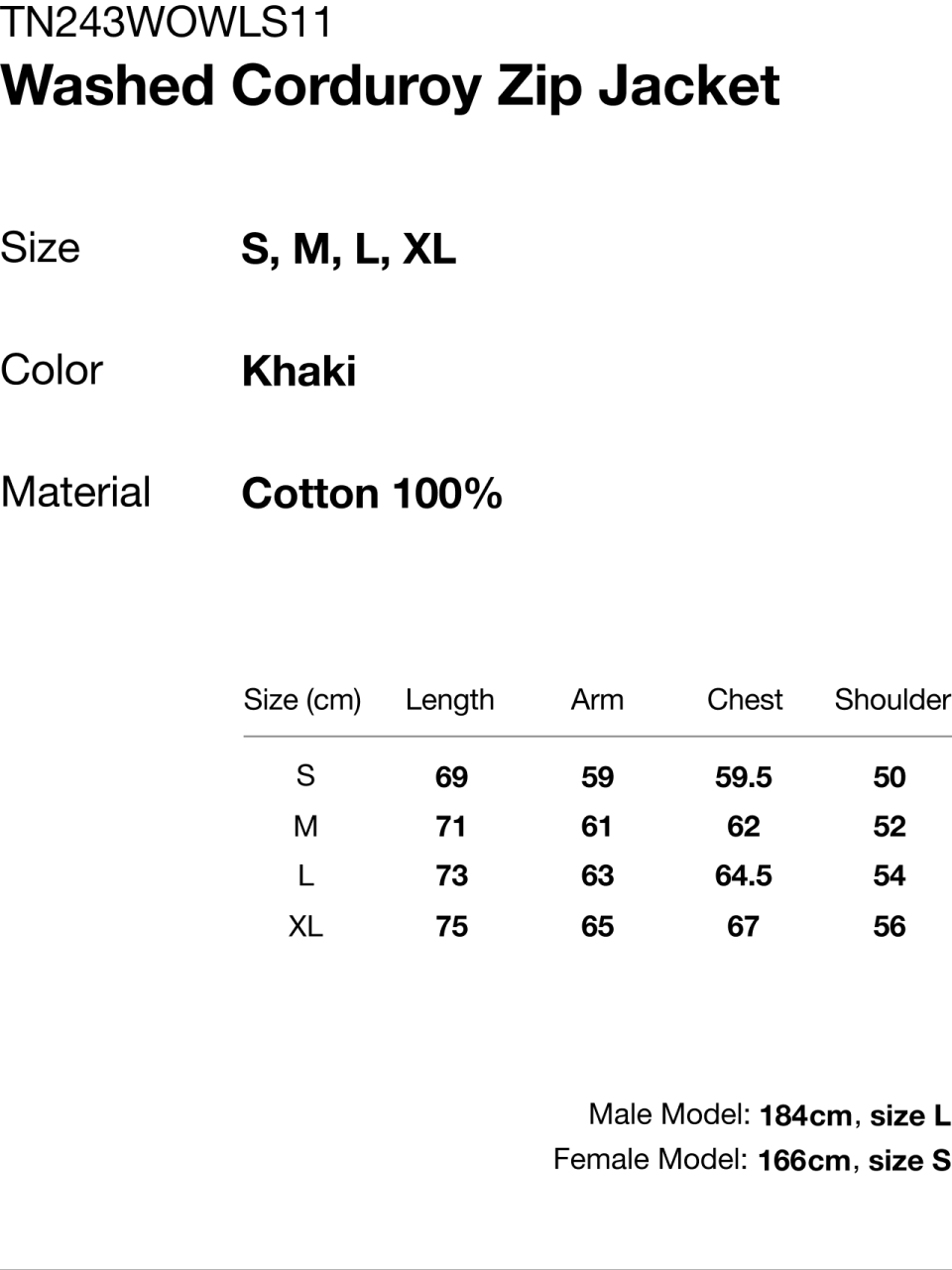 Washed Corduroy Zip Jacket Khaki