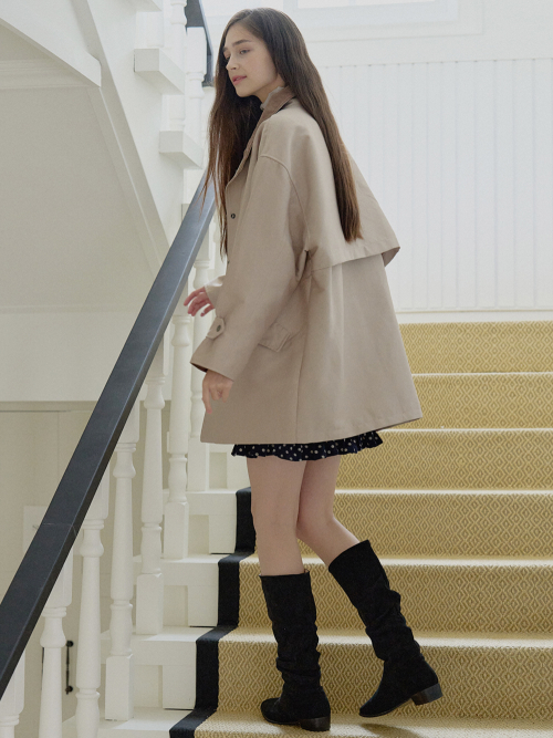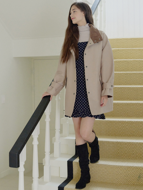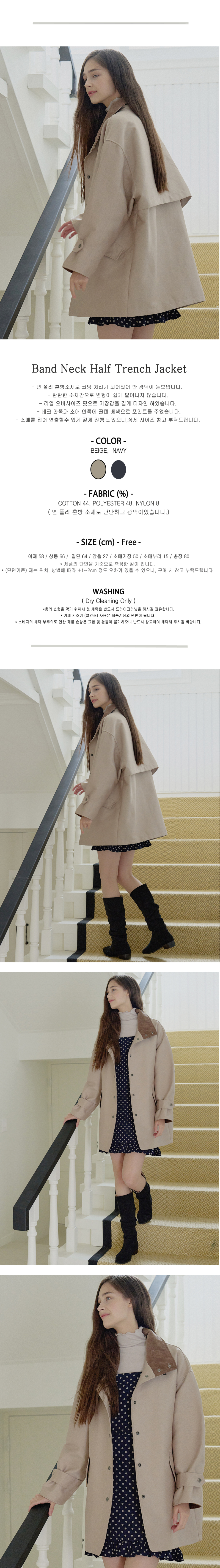 Band Neck Half Trench Jacket - BEIGE