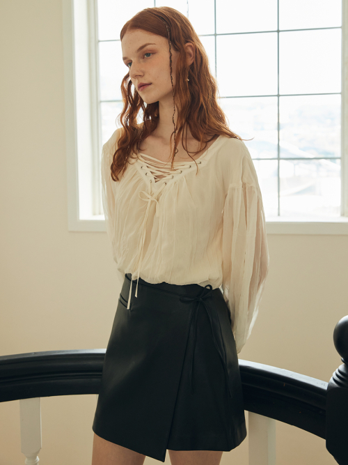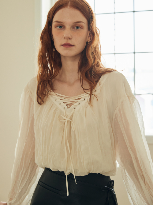 LACE UP CHIFFON BLOUSE_CREAM