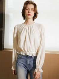 SHINING SHIRRING BLOUSE_CREAM