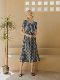 SQUARE NECK PRINT DRESS_DARK BLUE