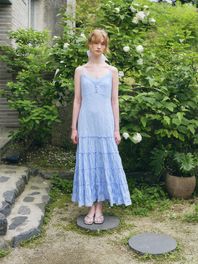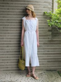 LACE STRAP BUTTON-UP LONG DRESS_WHITE